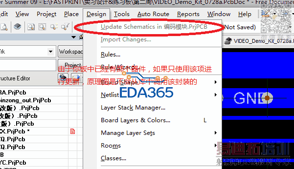 现修改PCB封装的原点,封装名称不变。更新UPDATE后,发现PCB中封装并无变化。
