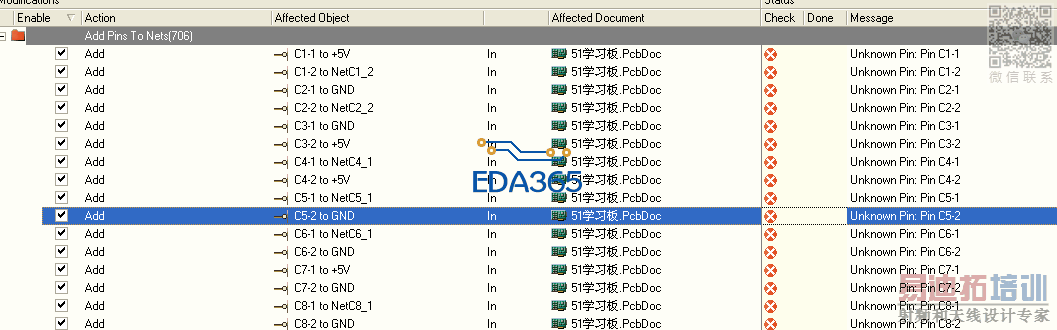 小弟画好原理图,检查好封装后,导入PCB时出现如下错误:不明引脚和加入class失败,强制执行又能导入,请问这是什么原因?