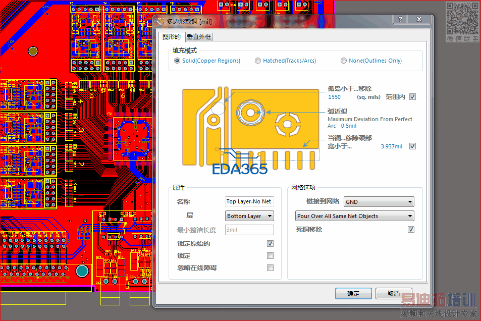 下面是我设置的铺铜属性,因为我铺2块板子,一块很快就铺好了,另外一块到现在多还没铺好
