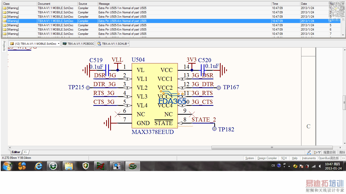 另外发现waring:Extra PinU505-4 in Normal of part U505!整个原理图就两封装出现此警告,不知道那有问题!见下图,