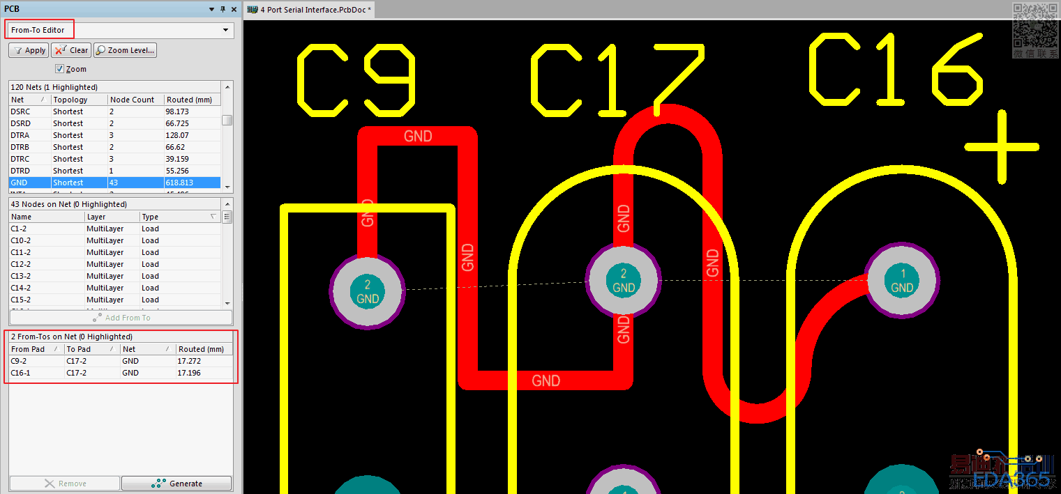 在Altium Designer 进行PCB设计中,一个网络走线有多个节点,如何测量其中的两个节点的实际走线长度呢?急!有几个网络需要等长设计,不知道该如何测量走线的长度,以前用PADS可以,不知道Altium Designer如何测量,跪求。
