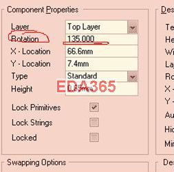 直接在原理图中放置的元件无法设置成45°,只能在原理图元件编辑器中画45°斜放元件后调用。但要注意一个技巧:引脚长度设为零并放置在节点上,用画线工具画引脚,否则这个元件难以正常使用。