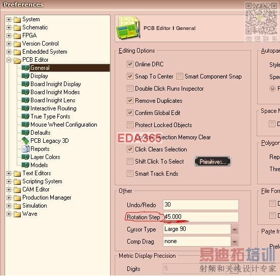 直接在PCB环境下单击右键option—>preferences