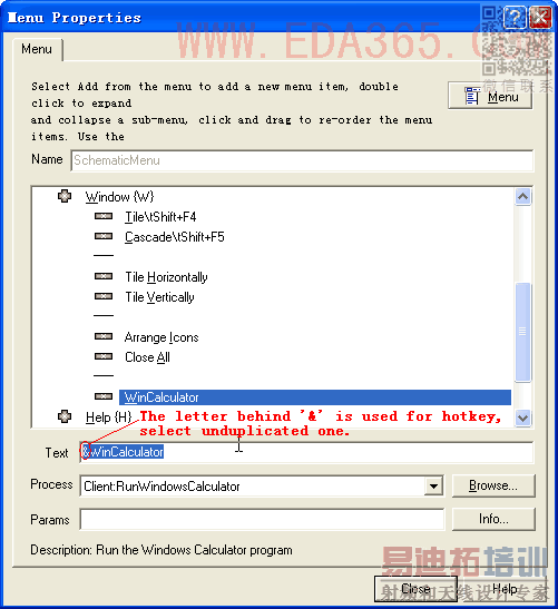 4,修改显示的文字以及热键,在热键字母前使用'&'就可以了,但是不要选择成跟现有的相同!