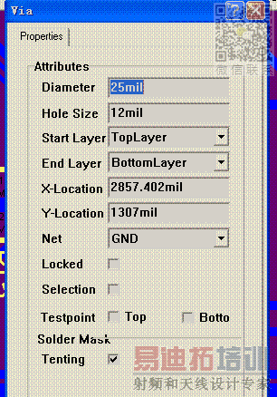 大家好,帮我看下,这个图的Tenting打上钩了,那它的意思是不是说,这个过孔的阻焊是没有的了?