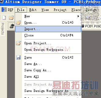 打开altium,新建一个pcb文件,选择“File->Import”,选择刚才到处的文件。