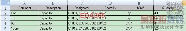 导出的BOM如图所示,comment栏中有值的是我手动改的,其它没有手动改的都堆在comment为cap栏中。