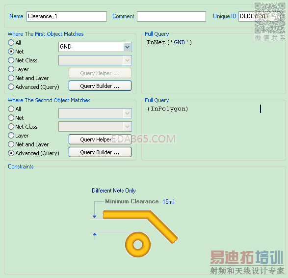 在旧规则中设置你想要的规则 间接/直接 15MIL