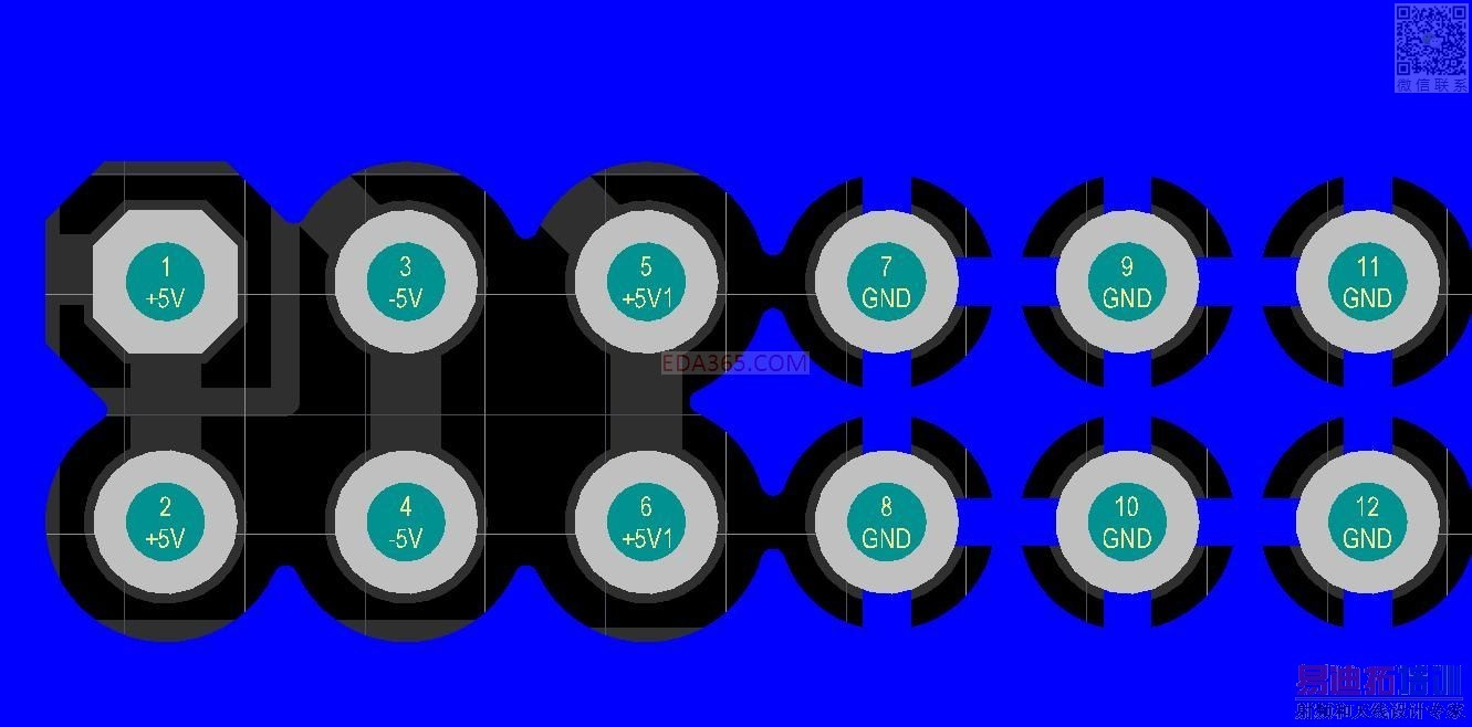 你是否发现第二个图中的接地网络没有达到十字连接(全局安全间距为20mil)。而问题解决的图是全局20mil,与地网相连的盘间距是15mil达到了十字连接。