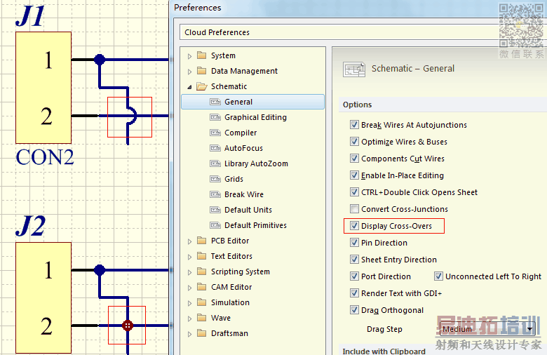 AltiumDesigner画原理图时只交叉不想交怎么设置