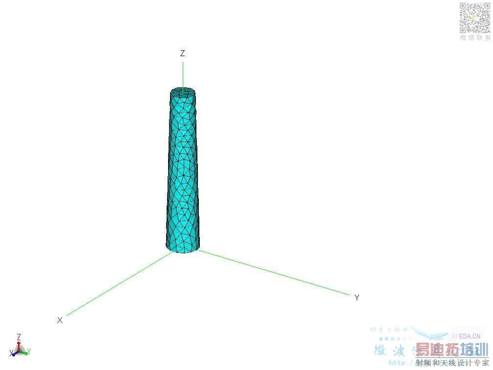 模型:上直径28.4cm,底面直径64.5cm,高度2m的圆锥柱,材料的相对介电常数为3.0,平面波theta=90度、phi=0度入射。