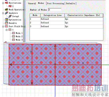 如下图所示,可以利用wave port设置波导的3种工作模式,从而观看波导内部的TE10、TE01、TE20等模式。但是如果需要利用lump port,怎样来设置多种工作模式呢?