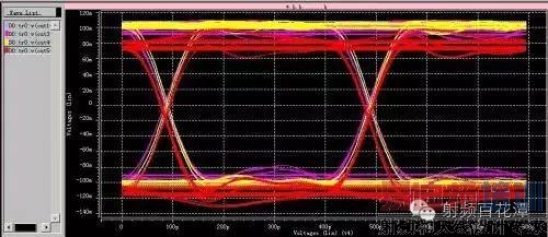 在Hspice对主文件test.sp进行仿真分析,生成test.tr0波形文件,由于在Hspice下看眼图有回波线如图28,影响实际眼图效果。
