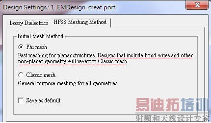 Ans:傳統HFSS只有一個求解頻點(solution frequency, adaptive frequency),HFSS除了基於這頻點決定initial mesh的品質(for example, zero order uses 1/10 lambda refinement),也基於這頻點做refine mesh。對於waveguide filter或EBG的應用,在某些頻段範圍能量是完全不會傳遞的,若solution frequency正好設在這範圍內,會導致HFSS無法很好的以判斷error percent做refine mesh。像AN010 SIwave\9.4的例子,HFSS的solution frequency就不能設40G以上,否則S-parameter的結果就會有問題,此時如果有兩個solution frequency就可確保refine mesh的品質(準確)。
