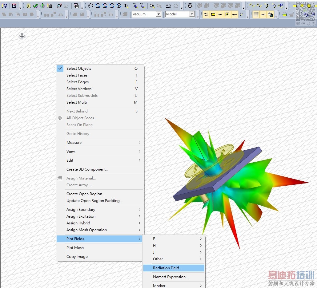 HFSS17.0怎么弄仿真方向图和模型叠加在一起的图?就类似CST做出来那种,我的图片格式不对发不上来...