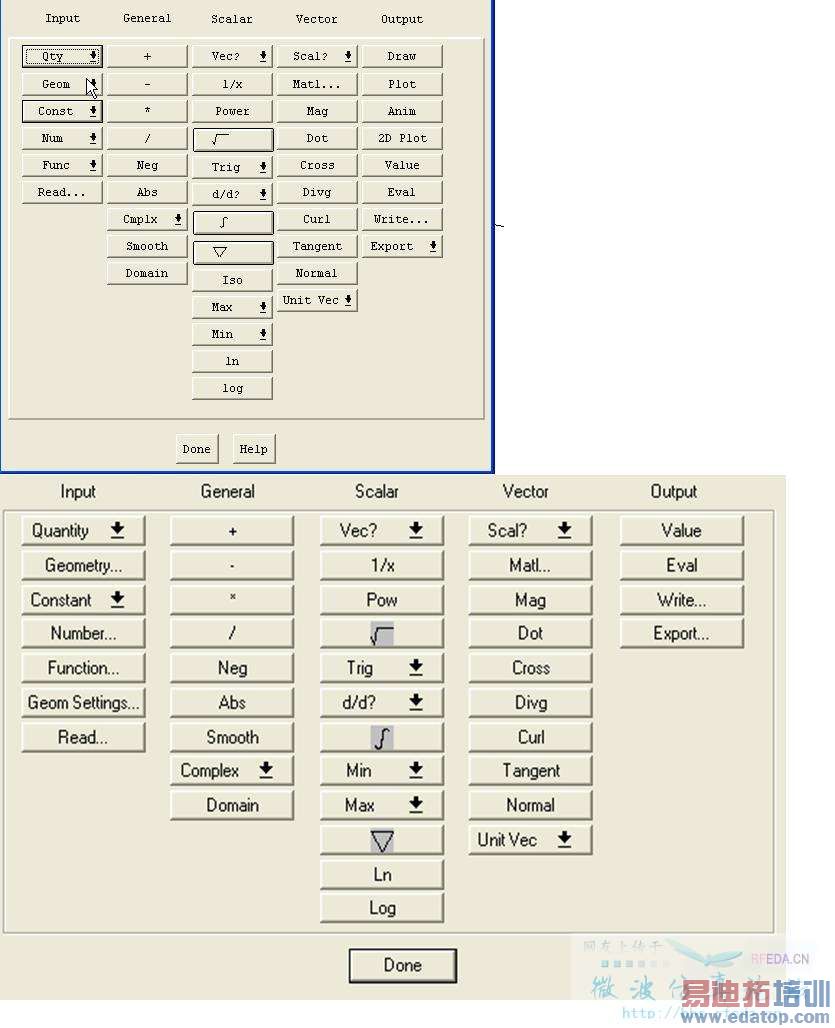 为什么一个教程里的电子科技大学贾宝富的那个HFSS后处理教程中,场计算器的有两个界面啊?我的是HFSS10 ,是后面一个界面,没有2D plot这一项,想把结果画成曲线应该怎么办?
