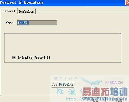 无限接地就是默认那个平面是一个无限大的面,一般用于反射板,如果是贴片就不能使用,而且无限接地必须是辐射吸收边界的一部分,不能在辐射吸收边界内