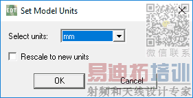 从主菜单栏中选择Modeler-->Units 命令,打开设置窗口: