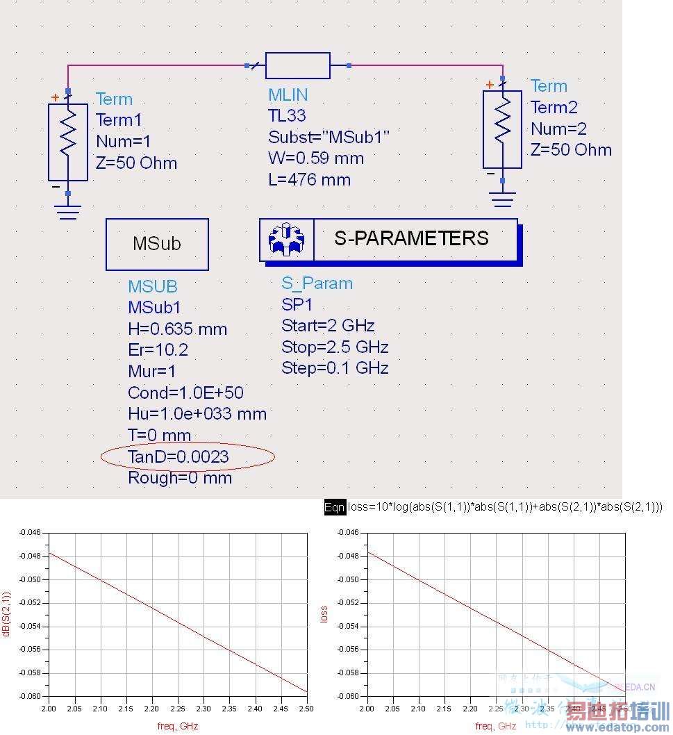 介质的损耗角正切是不是ADS中微带线的损耗角正切TanD ,如果是的话 就是0,如果不是,那我也不知道是什么了。微带线的长宽,是用ADS算的