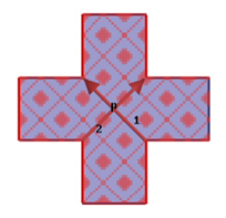 2、对于其他非规则类型的端口,必须选择第二种积分线设置方式,align modes using integration lines,如图所示非规则十字形端口,此时设置积分线方向即是模式方向,如有简并模式(degenerate modes)存在,注意同一组模式需在alignment group选择同一组数字,如1。
