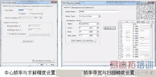 这里我们需要设置求解中心频率,和扫频范围,示意图如下。