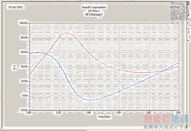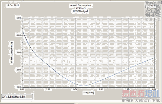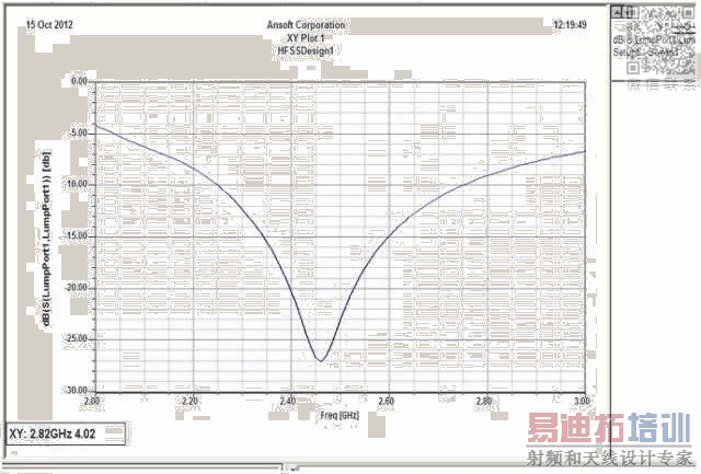 上面的S11图是天线在2G Hz ~3 G Hz频段内的回波损耗,这个贴片偶极子天线中心频率约为2.45G Hz。