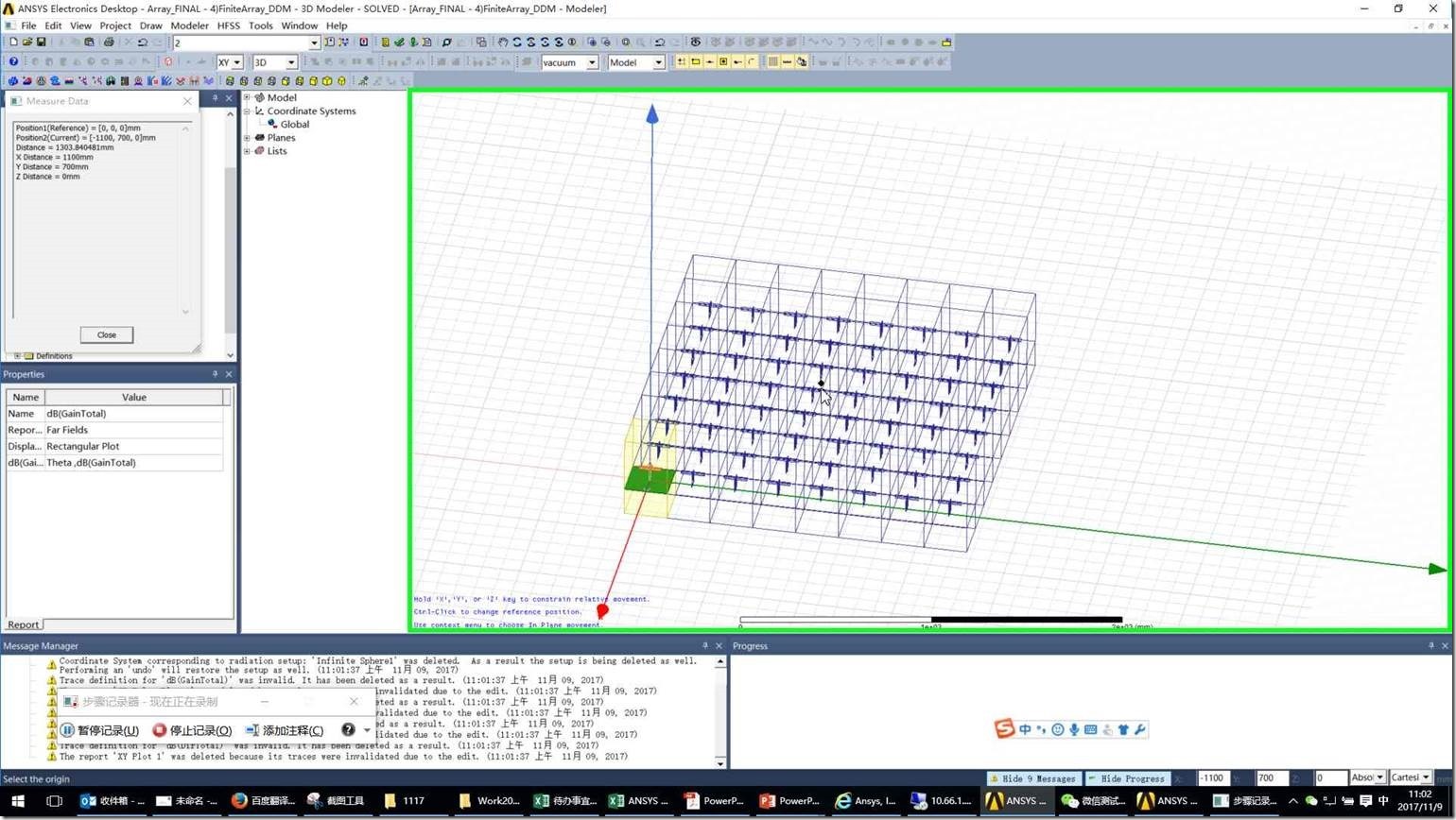 步骤 24: 用户在"Array_FINAL - 4)FiniteArray_DDM - Modeler (窗口)"上左键单击(在"ANSYS Electronics Desktop - Array_FINAL - 4)FiniteArray_DDM - 3D Modeler - SOLVED - [Array_FINAL - 4)FiniteArray_DDM - Modeler]"中)