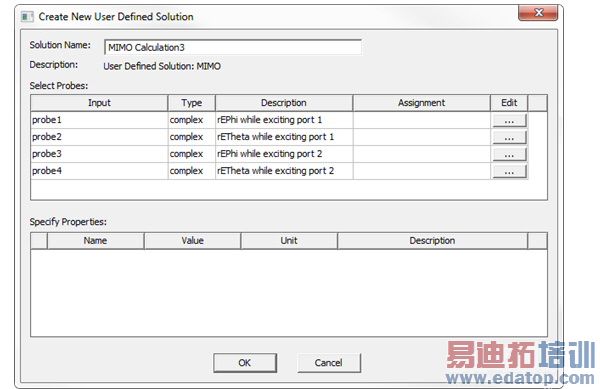 4. Select Results>Create User Defined Solution to select Input probes in the Editing User Defined Solution dialogue for the MIMO calculation.
