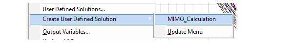You also click Results>Create User Defined Solution>Update Menu to display the MIMO_Calculation selection.