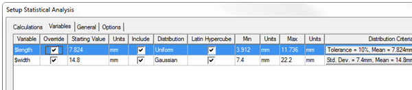 Uniform distributions such as variable “length” above use only the Tolerance value, and do not have a cutoff probability.