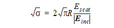 Complex (Bistatic) RCS | For designs with Plane Incident Waves. (RCS is not supported for other types of incident waves) The equation for complex (bistatic) RCS is calculated as:
