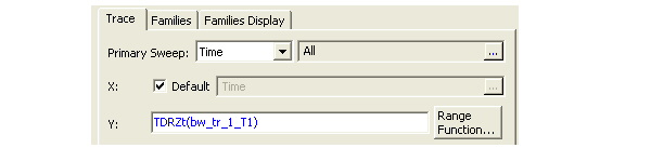 The idea behind Time-Domain Reflectometry (TDR) is to excite a structure with a step function, and inspect the reflections as a function of time. Before you can examine the time domain, you must perform an Interpolating sweep for a driven solution (Modal or Terminal or Transient). You can then select Time from the Domain list in the Report dialog. You also need to specify the input signal, whether step or impulse.