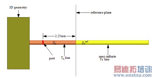 In this situation, by default the reference plane will be along the port surface as shown below.