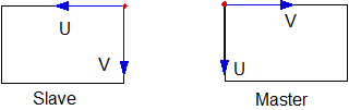 The angle between the axes defined by the u point and v point must be identical for the master and slave boundary.