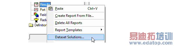 After you have imported one or more DSO solutions, you can create a Dataset Report. Right click on Results and from the menu select Create Dataset Report, and the type of report.