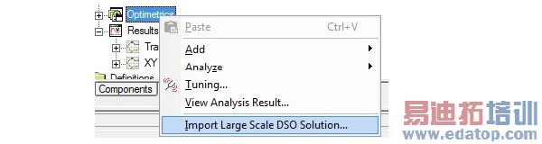In the Project tree. right click on Optimetrics and from the menu click Import Large Scale DSO Solution.