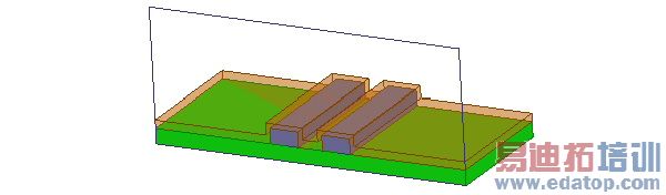 An HFSS model of a coupled microstrip transmission line is shown below.