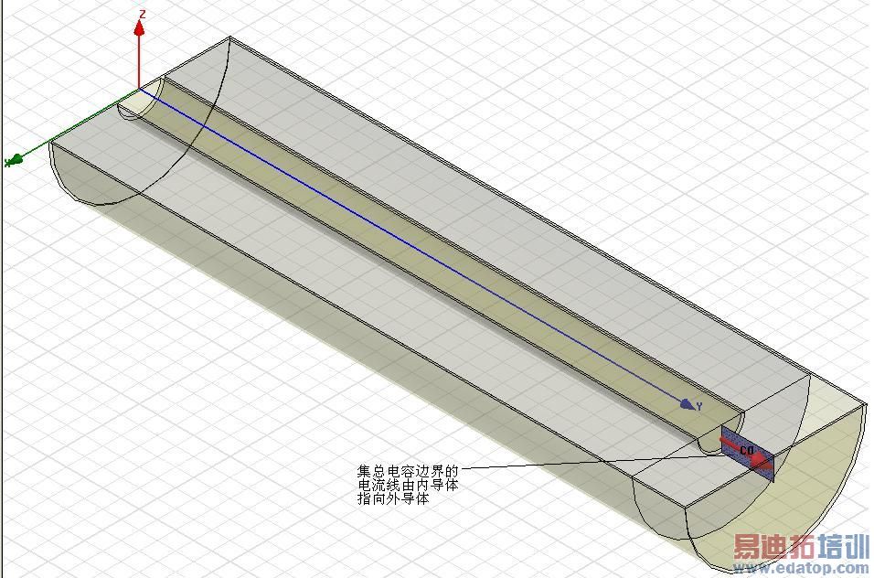 由于HFSS之中没有集总电容,因此我用一个集总电容面替代了C0,如图2所示:
