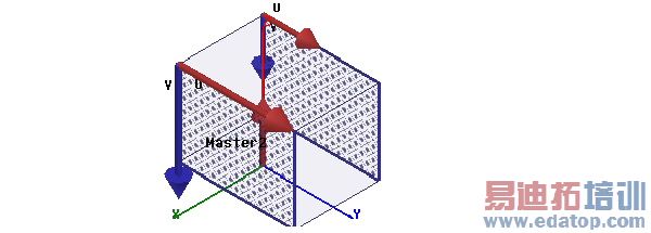 You must define appropriate master and slave boundaries, as well as other boundaries required for the model. Deleting a master or slave boundary that is referenced by an existing array also deletes the array. Typically, you define master and slave boundaries as opposite sides of a cell.