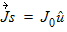 The unit vector is in the direction of the user defined current flow direction line. The magnitude is obtained by first assuming that the surface is a rectangle such that the width, w, is equal to the area divided by the length of the current flow direction line. The magnitude is set equal to the total current specified by the user divided by w. Note that any source surface is allowed but considering the definition of the surface current density it is recommended to only use a planar rectangular surface.