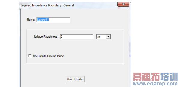 2. Enter the Surface Roughness for the layered structure.