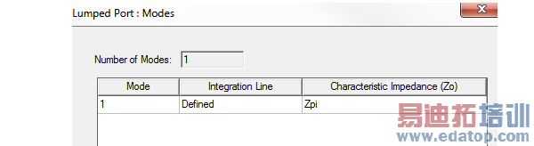While assigning lumped ports for modal solutions, you will be prompted to set the complex full port impedance which must be non-zero, set the non-negative resistance, and finally define the integration line for the single mode. The steps are as follows: