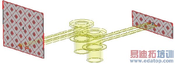 In this section we will assign wave ports on a differential pair via model shown below.