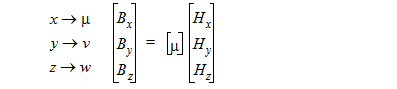 To specify the relative permeability for an anisotropic material, enter the m1, m2, and m3 values in the Value boxes of the T(1,1), T(2,2), and T(3,3) rows, respectively. If the relative permeability is the same in all directions, use the same value for m1, m2, and m3. These values can also be entered as variables.