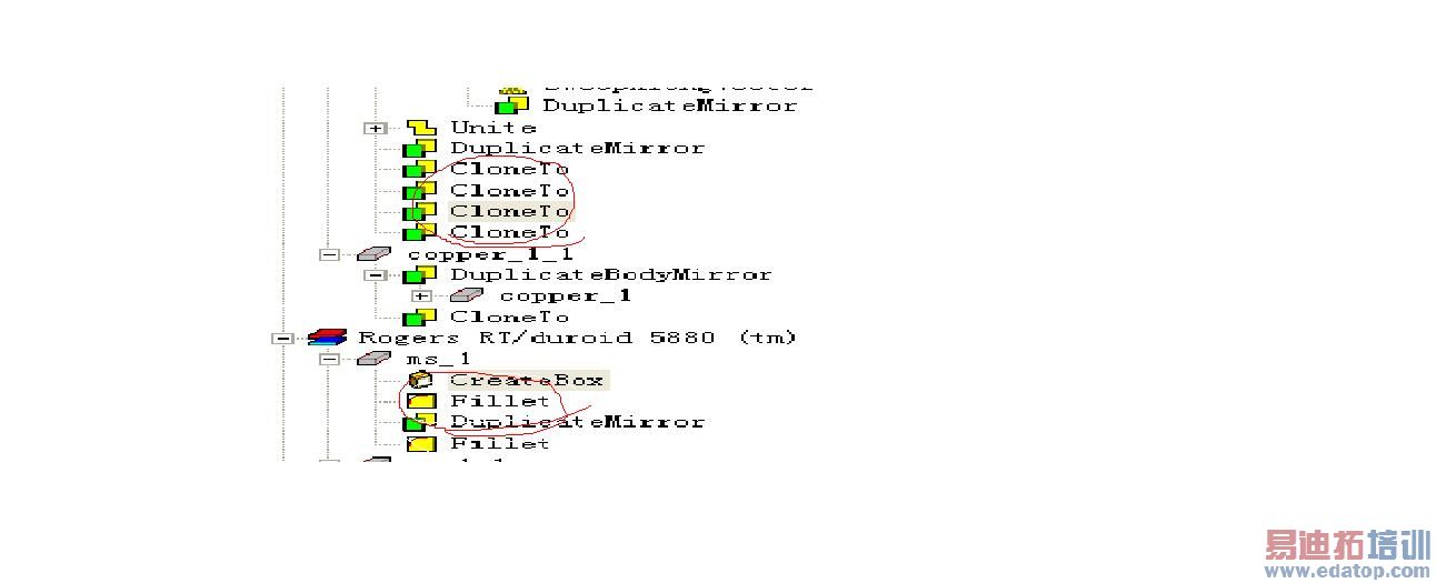 HFSS 里头的命令:clone to 和 fillet 表示什么意思