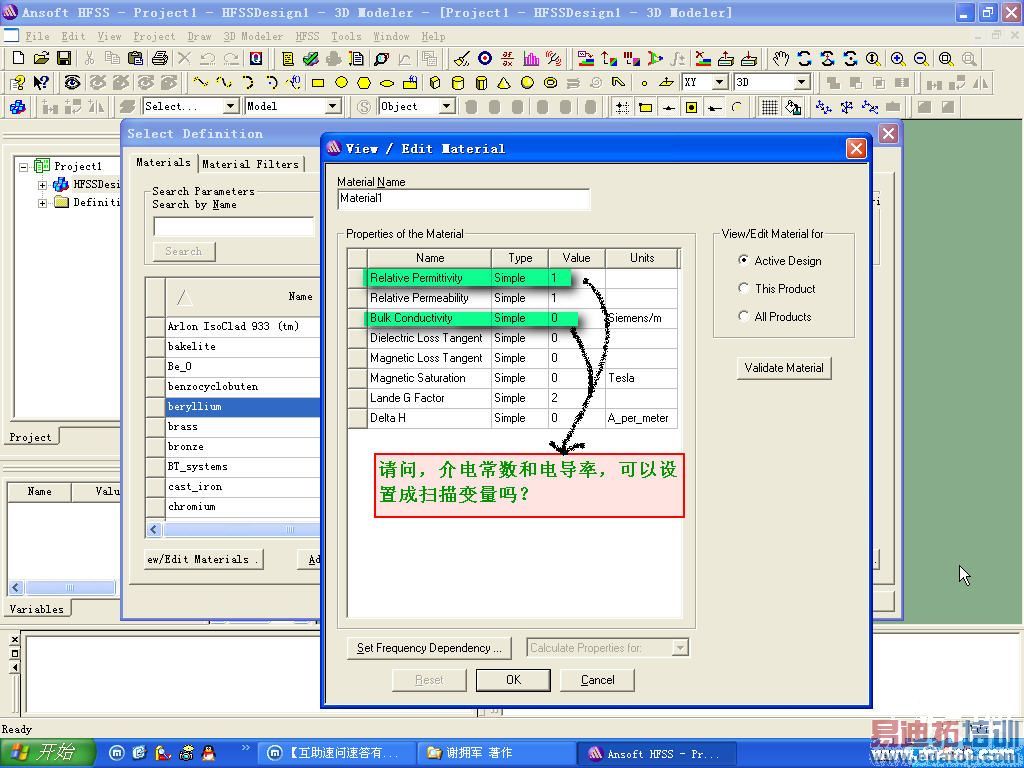 HFSS可以将材料的介电常数和电导率设置成扫描变量吗?