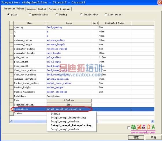 在元件的“Sover-On-Demand”项做了如上的设置之后,其属性栏就会出现“cosimulator” 这一项,使用者可以在一系列的协同仿真设置中进行选择,比如,进行优化时,一般会选择对已有的仿真结果进行插值interpolating。