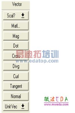 Matl:第一行的算式与材料特性进行乘除运算。输入过程:选择[Matl] 。显示[Material Operation];选择材料特性,Permittivity (epsi):相对介电常数,Permeability (mu):相对磁导率, Conductivity:电导率,Omega (ω):角频率、ω选择[Multiply] 或 [Divide] ; [OK] 结束。