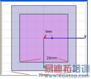 - 定義29mm*29mm的正方形patch antenna,板厚1.6mm的堆疊高度,FR4介電係數4.25