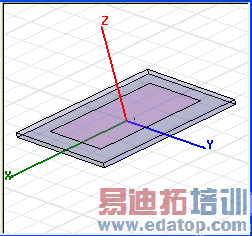 - 定義29mm*38mm的矩形patch antenna,板厚1.6mm的堆疊高度,FR4介電係數4.25